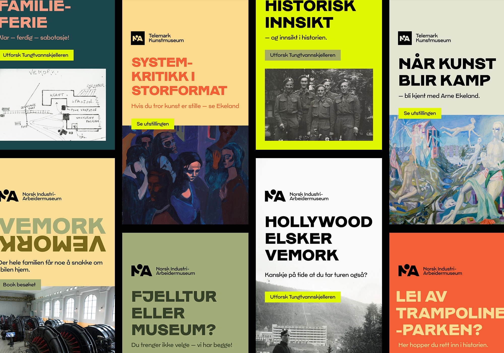 Vi har utviklet en serie taktiske annonseuttak for NIA på tvers av deres destinasjoner – med budskap som handler om alt fra UNESCO til Hollywood til fjell til kunstformidling – med plasseringer i både META og Google. Vi bistår også løpende på generell designproduksjon.